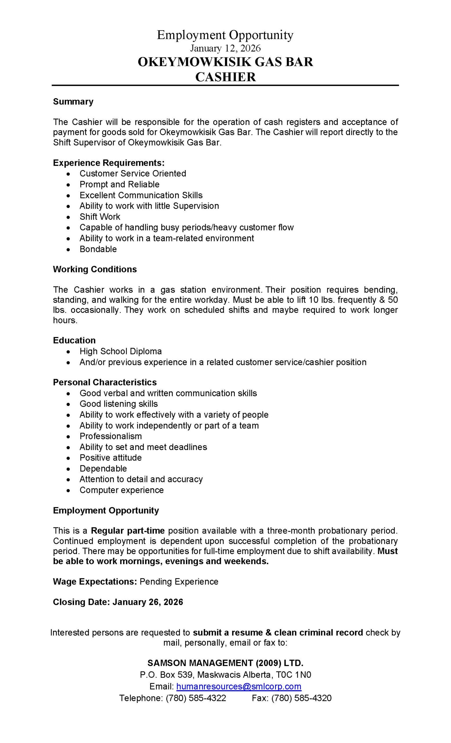 Closing Date: January 26, 2026