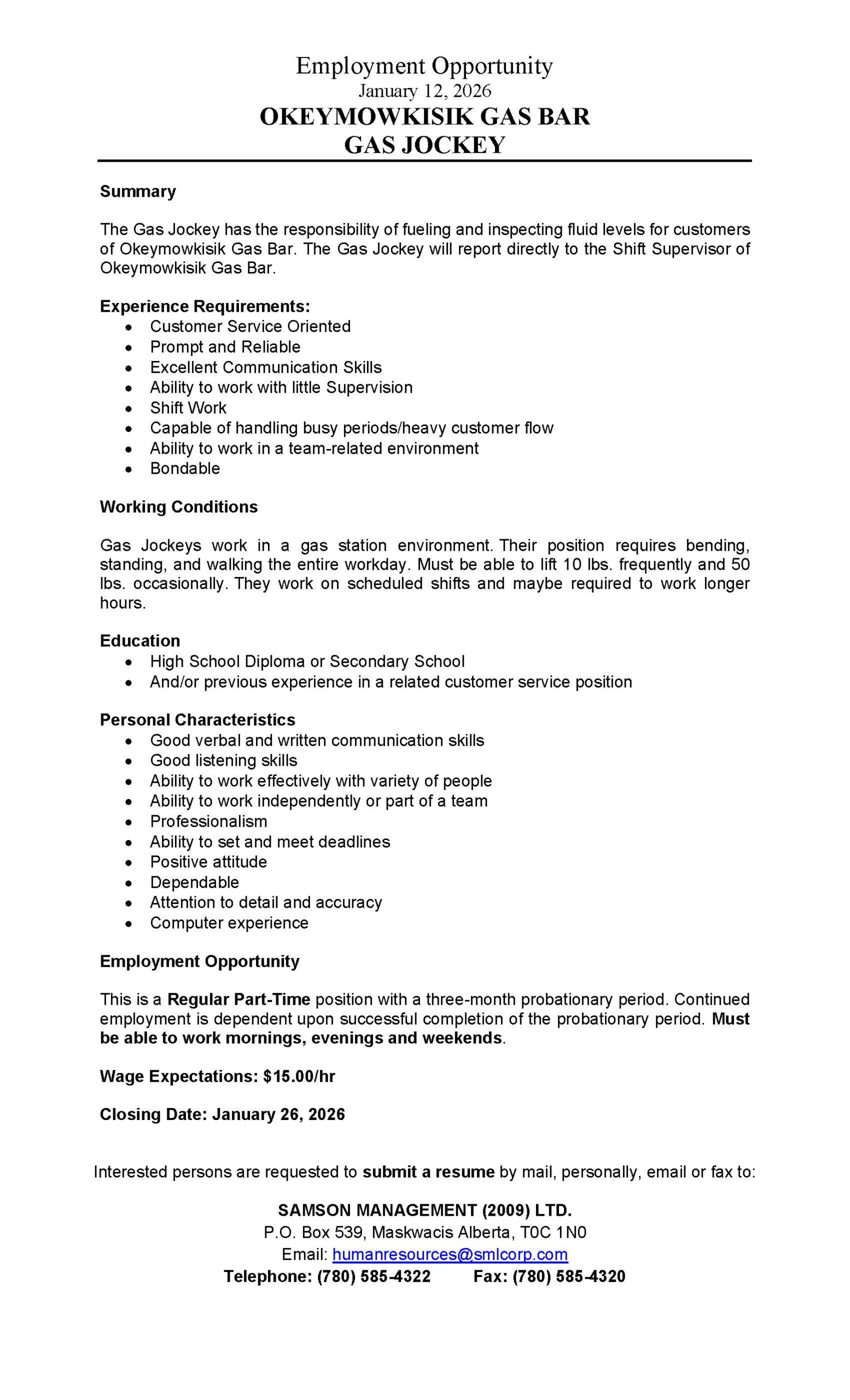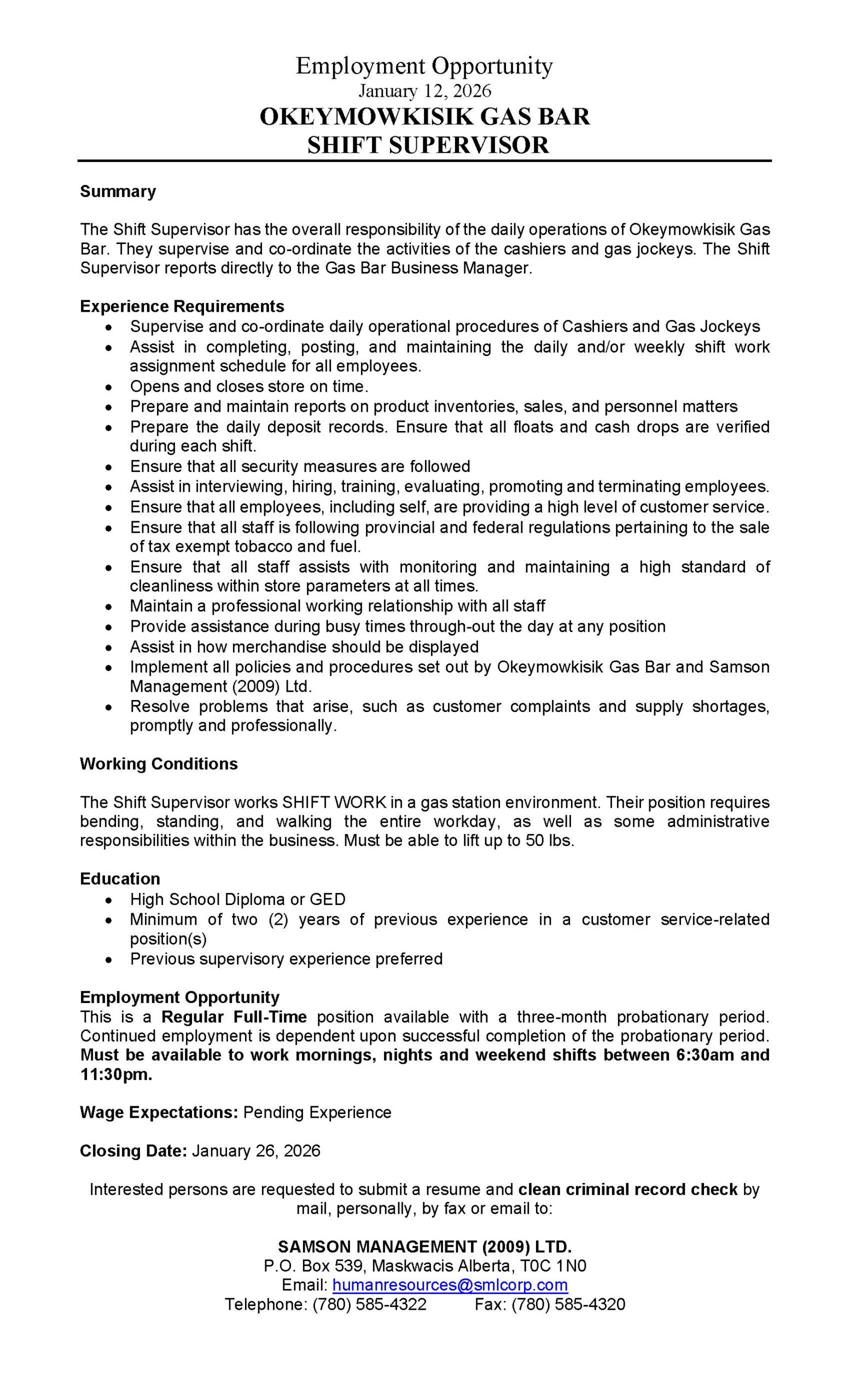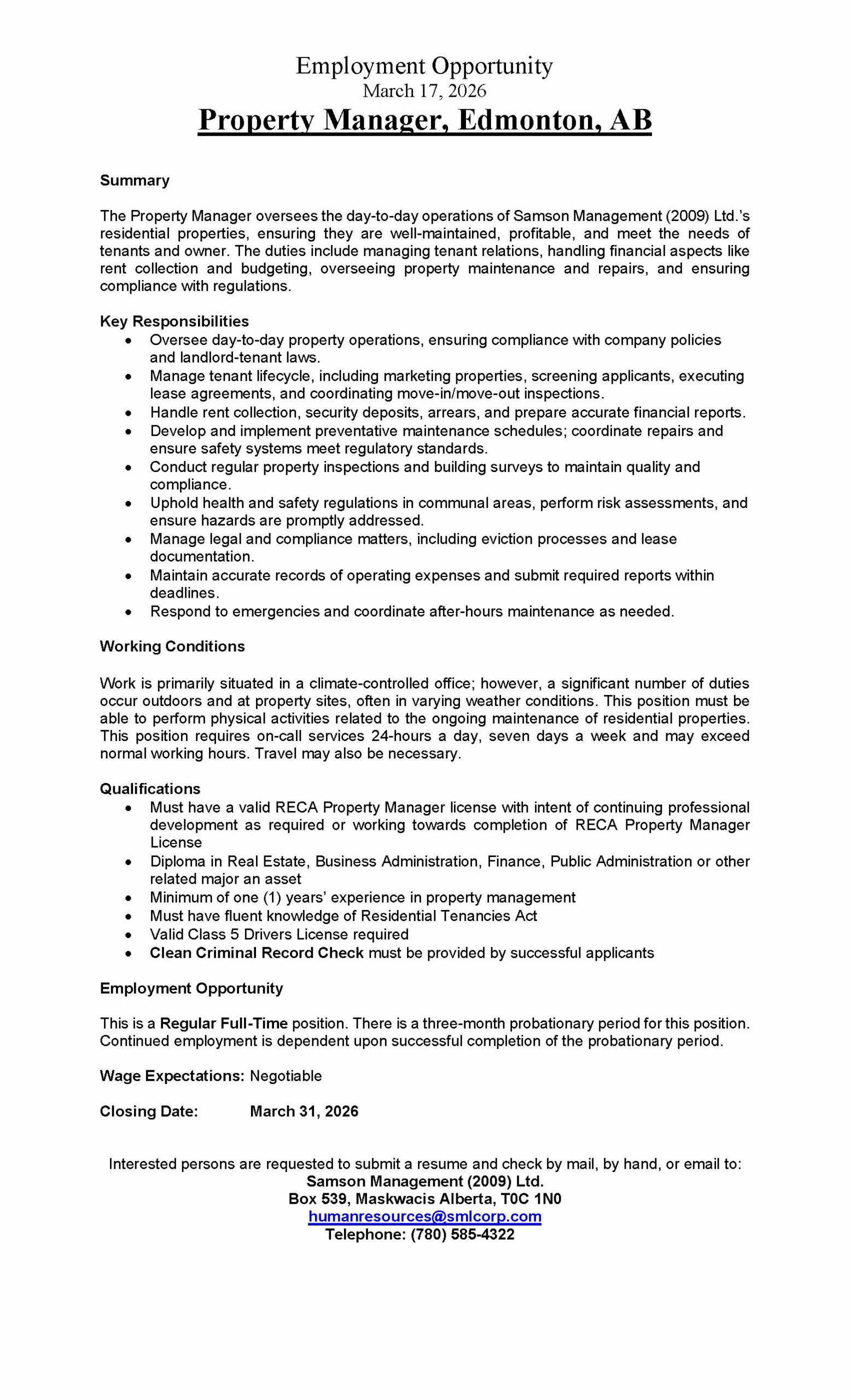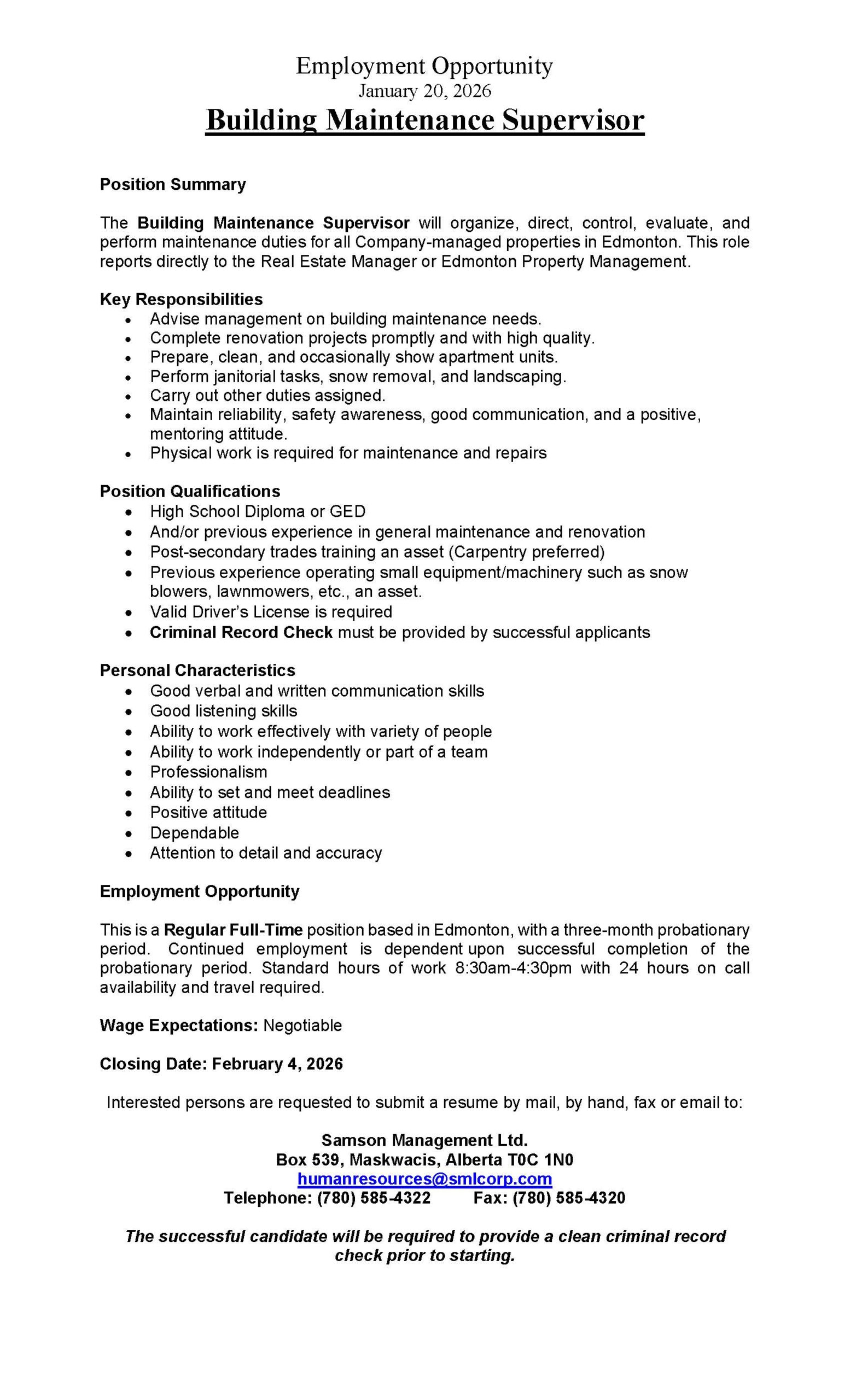 Are you looking for an employer who offers a friendly work environment, great benefits, and huge potential for growth and advancement? Then Samson Management Ltd. is right for you! In addition to our focus on growing our business and investment portfolio, we also pride ourselves on growing our staff. By employing and training a diverse workforce – most of whom are Maskwacis community members – our staff across all divisions are working jobs to not only improve their own quality of life, but that of this community.